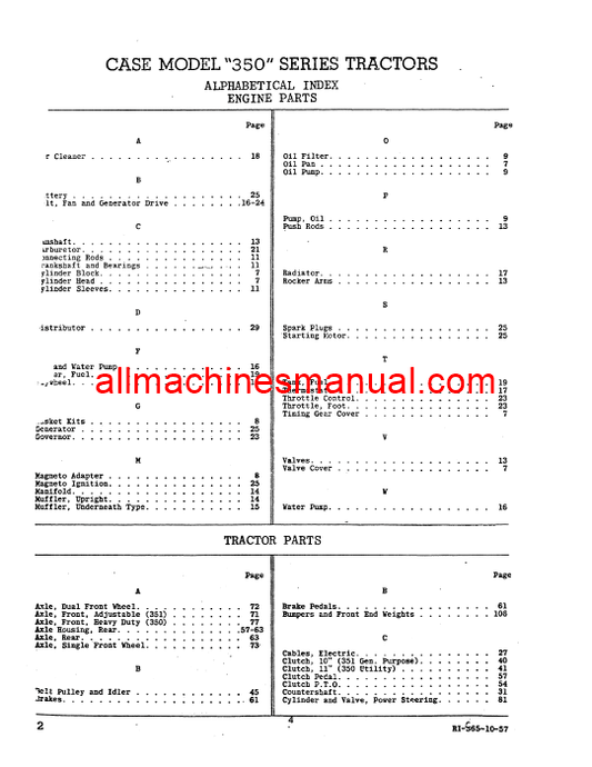Download Case IH 350 Series Tractor Parts Manual RI365