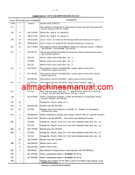 Download Case IH 400, 450 Series Tractor Parts Manual TC-55A