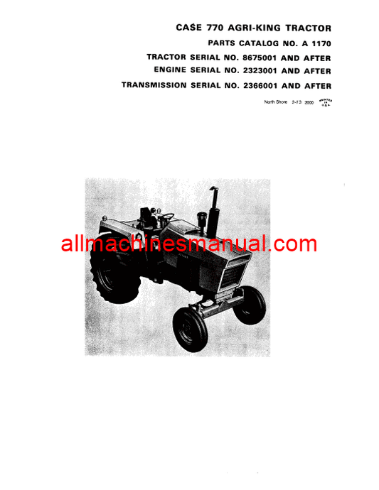 Download Case IH 770 Agri King Tractor Parts Manual A1170