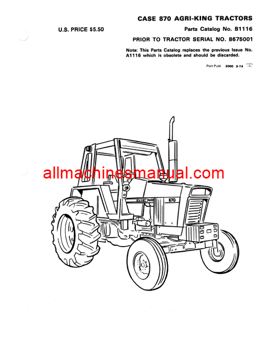 Download Case IH 870 Agri-King Tractor Parts Manual B1116