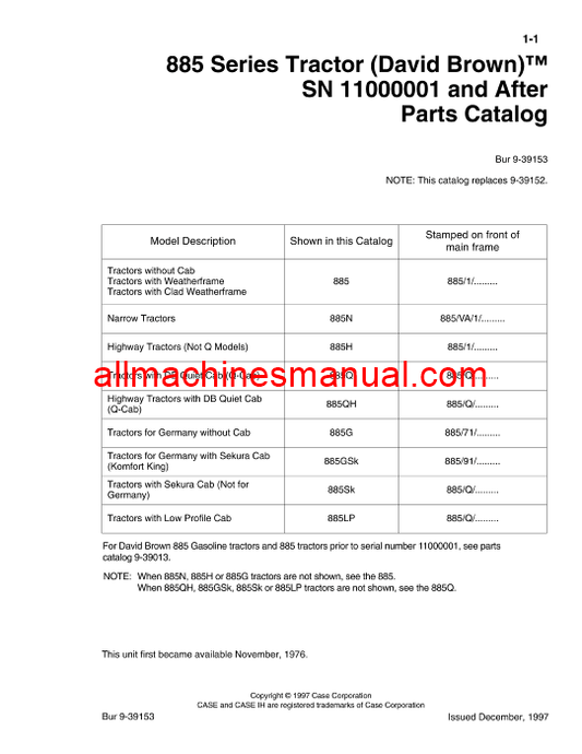 Download Case IH 885 Series Tractor Parts Manual 9-39153