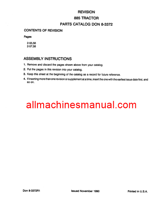Download Case IH 885 Tractor Parts Manual 8-3372
