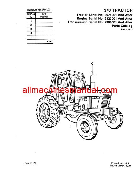 Download Case IH 970 Agri King Tractor Parts Manual C1172