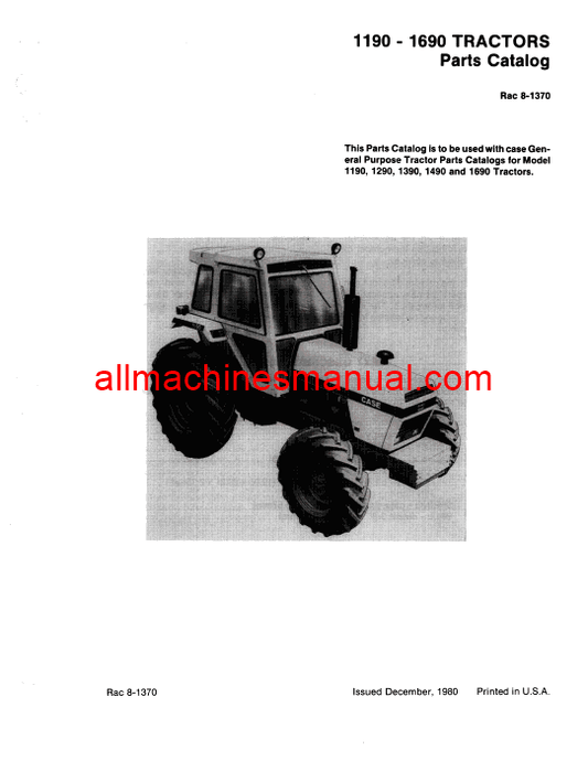 Download Case IH 1190, 1290, 1490, 1690 Tractor Parts Manual 8-1370