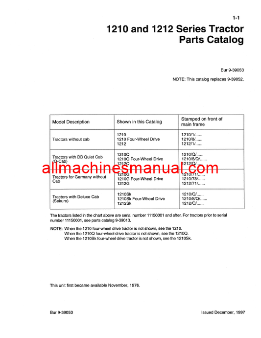 Download Case IH 1210, 1212 Tractor Parts Manual 9-39053