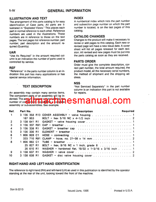 Download Case IH 1456 & 21456D Tractor Parts Manual TC-139