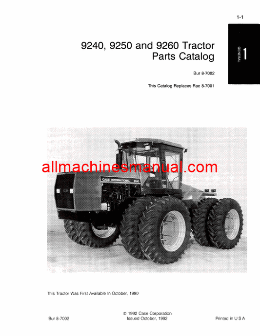 Case IH 9240, 9250, 9260 Tractor Pdf Parts Manual 8-7002
