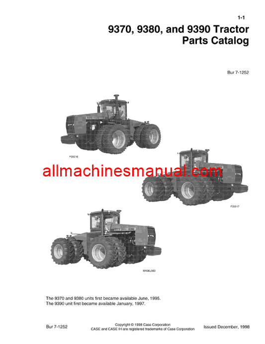 Case IH 9370, 9380, 9390 Tractor Pdf Parts Manual 7-1252