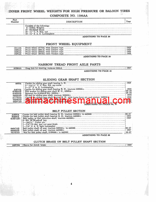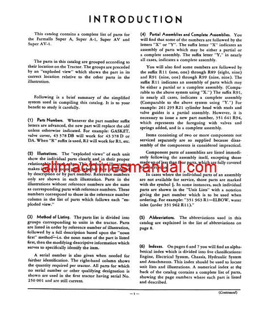 Case IH A, Super A, Super AV Tractor Pdf Parts Manual TC-39C