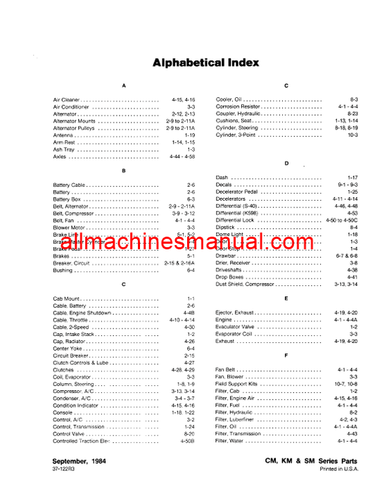 Case IH CM, KM, SM Bearcat Cougar Panther SRS IV Tractor Pdf Parts Manual 37-122R3