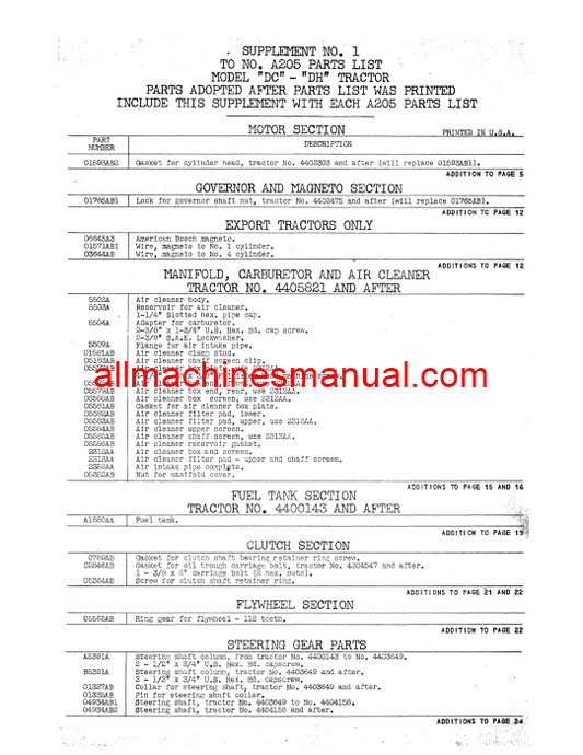 Case IH DC-DH Tractor Pdf Parts Manual A205