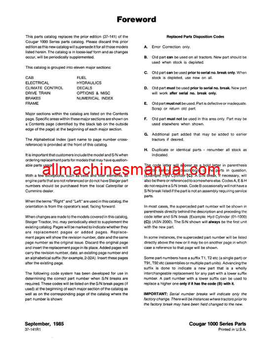 Case IH CR1225, CR1280, KR1225, KR1280 Cougar Range Powershift Tractor Pdf Parts Manual 37-141R1