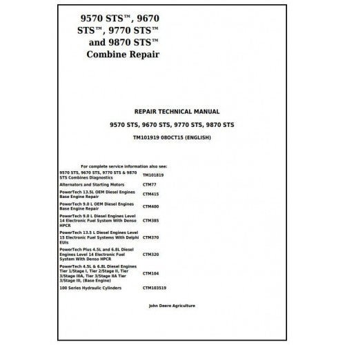 John Deere 9570 9670 9770 9870 STS Combine Pdf Service Repair Technical Manual TM101919