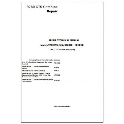 John Deere 9780 CTS Combine Pdf Service Repair Technical Manual TM4712