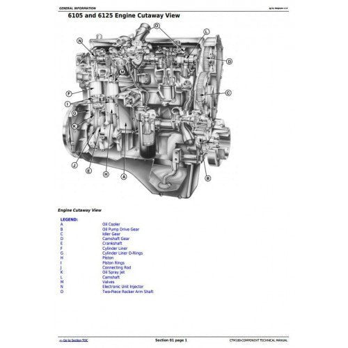 John Deere Power Tech 10.5L (6105), 12.5L (6125) Diesel Base Engine Component Pdf Service Repair Technical Manual CTM100