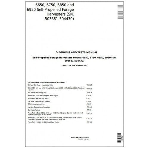 John Deere 6650 6750 6850 6950 Forage Harvesters Pdf Diagnostic Service Manual TM4621