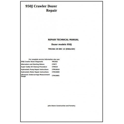 John Deere 950J Crawler Dozer Pdf Service Repair Technical Manual TM2364