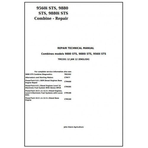 John Deere 9560i STS 9880 STS 9880i STS Combine Pdf Service Repair Technical Manual TM2201