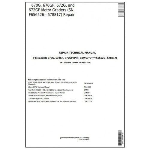 John Deere 670G, 670GP, 672G, 672GP Motor Grader Pdf Service Repair Technical Manual TM13025X19